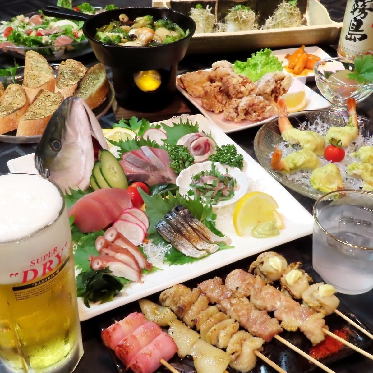 【平日限定】生ビールOK◎2H飲み放題☆地鶏のタタキや串盛り等6品☆4500→4000円コース